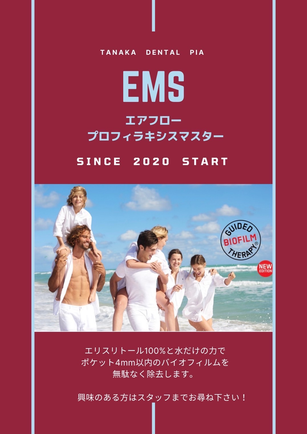 をうけ、予防歯科の診療範囲の保険内容が拡大された事は、 予防歯科を大切に考える私共たなか歯科医院にとりましても、国の方針を大変嬉しく思っております。